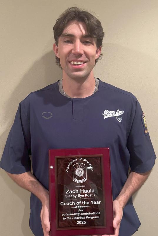 Home/Sports/Haala honored as Coach of Year Sports Haala honored as Coach of Year Sleepy Eye American Post 7 Sr. Legion Head Coach Zach Haala was named the Minnesota Legion Baseball Division II Sr. Coach of the Year for 2025. Facebook X Print
