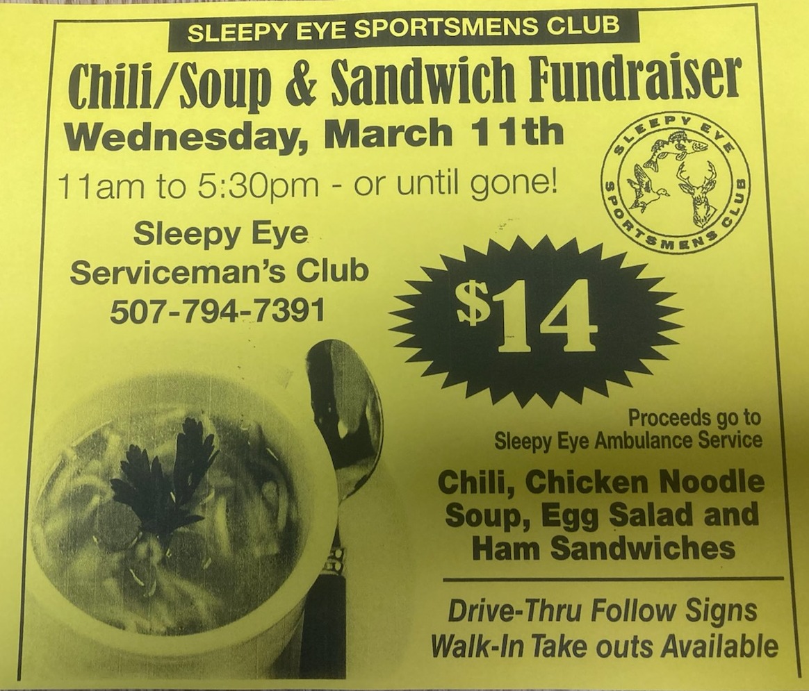 Home/What's Happening/March 11th: Sportman’s Club Chili/Soup & Sandwich Fundraiser What's Happening March 11th: Sportman’s Club Chili/Soup & Sandwich Fundraiser Facebook X Print