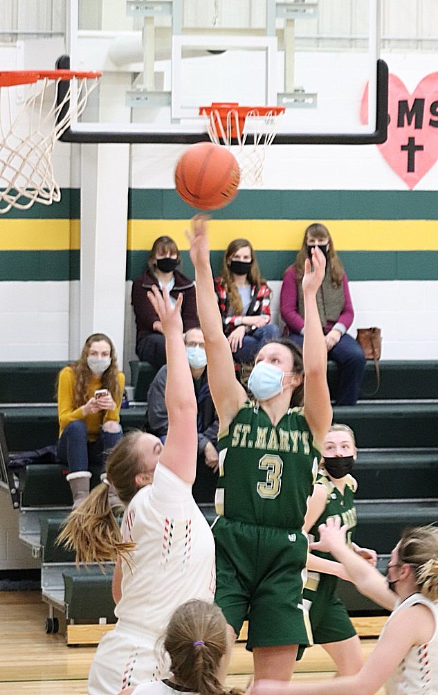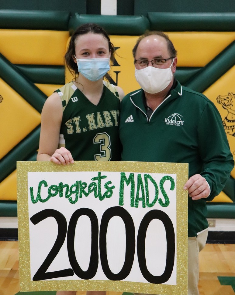 St. Mary’s junior girls basketball player Madison Mathiowetz surpassed the 2,000 career point mark January 21 in a home game against GFW. Mathiowetz is the school’s all-time scoring leader.