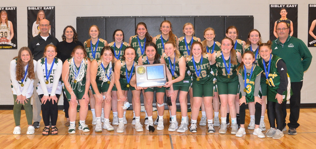 The St. Mary’s Knights kept their undefeated season (22-0) going by outlasting WEM 64-59 in a defensive gem at Sibley East to win the Section 2A championship. The Knights will now play in the quarterfinal round of state at a site and against an opponent yet to be determined.