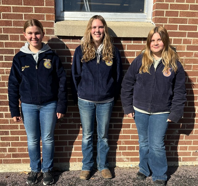 The Livestock Evaluation Team earned 13th place out of 18 teams and 77 individuals. Team members included: Kylie Fischer, Chloe Schwab, and Ruby Tauer. During the Livestock Evaluation CDE, students evaluate beef cattle, sheep, goats, and swine on physical characteristics and records for market and breeding usage. Members give oral reasons explaining their placing of certain classes.
