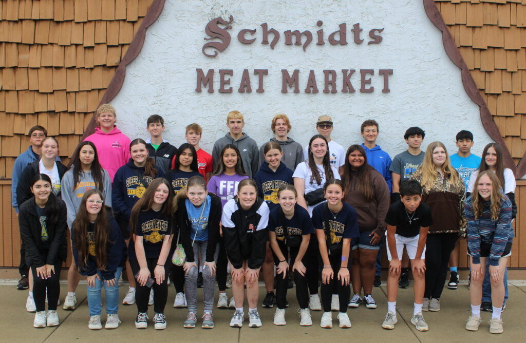 The day started with a trip to Schmidt’s Meat Market in Nicollet, MN. Since 1947 Schmidt’s has been supplying the community with their award winning smoked products. While touring, students first learned the history of the market before seeing how the meat is processed, smoked, and stored.