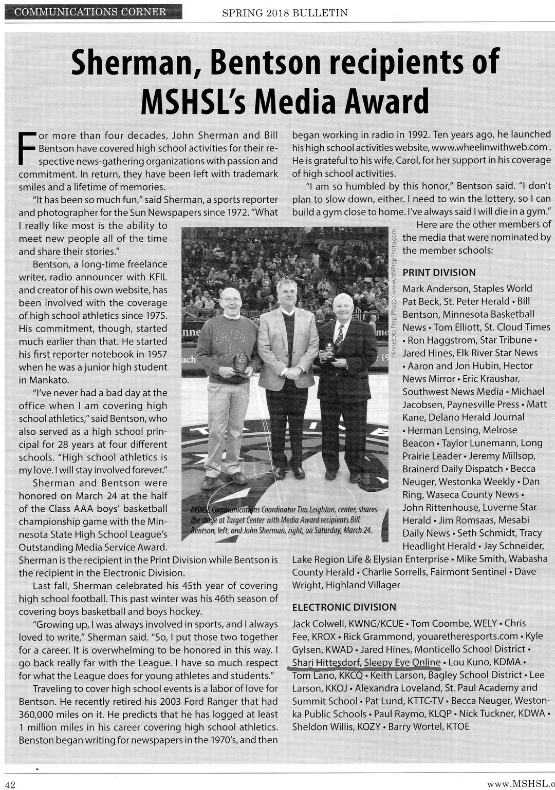 Sleepy Eye ONLINE’s Shari Hittesdorf was honored as a nomination for the Minnesota State High School League Media Award. Hittesdorf has covered sports for over 18 years, starting in 2000 as the Sleepy Eye Herald Dispatch’s Sport Editor. She created Sleepy Eye ONLINE in 2011.