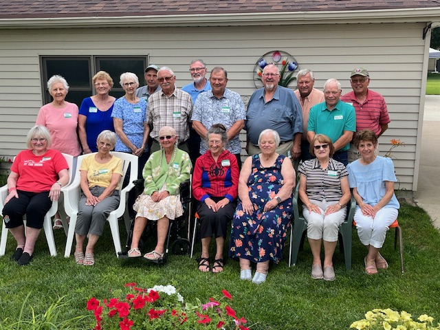 Sleepy Eye St. Mary’s High School Class of 1966 held their 59-year class reunion on August 1, 2025, at Gerald Braulick’s residence in Sleepy Eye. Pictured in the front row (left): Connie (Lee) Tretter, Brainerd; Kathy (Suess) Goetze, Duluth; Barb (Hillesheim) Filzen, New Ulm; DeeAnn (Pietig) Gieseke, Sleepy Eye; Alice (Hoffmann) Tanley, New Ulm; Jeanne (Haala) Lund, Dassel; Joan (Mangen) Robertson, Inver Grove Heights. Back row: Joan Grausam, Sleepy Eye; Brenda (Frederickson) Walden, Sleepy Eye; Jeanne (Miller) Hume, Eagle Lake; Gerald Braulick, Sleepy Eye; Richard Filzen, New Ulm; Gary Krzmarzick, New Ulm; Gerald Woessner, Minneapolis; Jim Fischer, Sleepy Eye; Dennis Krzmarzick, Sleepy Eye, Martin Hoffmann, Sleepy Eye and Richard Sellner, Sleepy Eye.