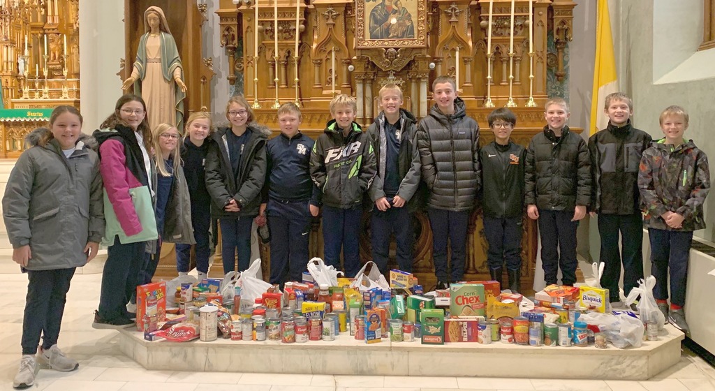 The St. Mary’s Elementary Student Council held a Thanksgiving Food Drive for the Sleepy Eye Food Shelf on Wednesday, November 16. Students, staff and parishioners brought their food to the front of church before Mass to emphasize that, when we help those in need, we are serving God and His people in a special way. The Student Council collected 248.4 pounds of food.