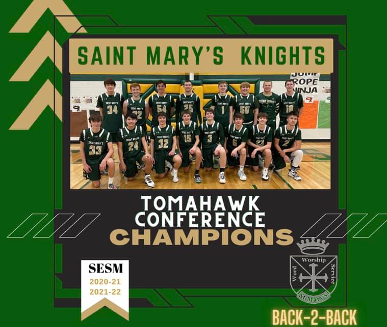 The St. Mary’s girls basketball team won their third consecutive Tomahawk Conference championship while the Knights boys hoops squad went back-to-back with titles.