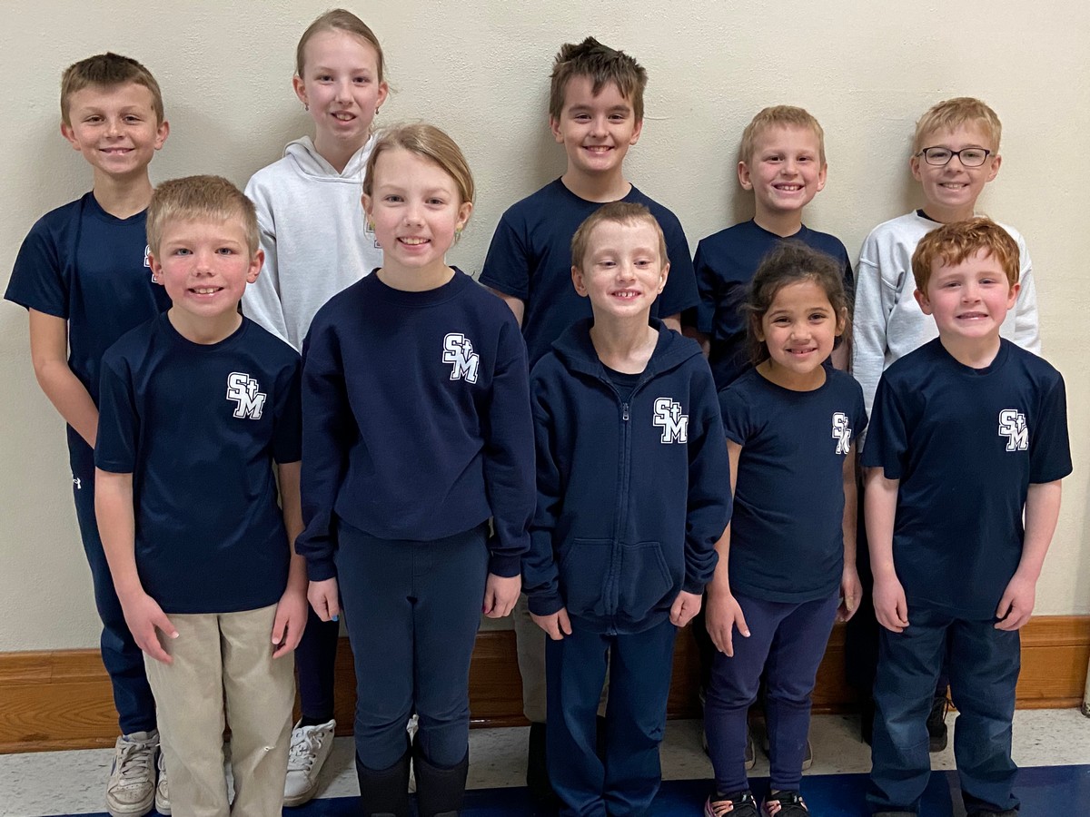 St. Mary’s Catholic School’s Students of the Day for the month of March. The virtue for March was “Respect: recognizing the dignity of all people” Back row: Avery Cook (3rd grade), Inara Andres (5th grade). MJ Wagner (3rd grade), Leo Schultz (3rd grade), and Jack Heiderscheidt (3rd grade). Front row: Henry Pietig (2nd grade), Emmalyn Berkner (2nd grade), Hunter Windschitl (1st grade), Haylee Pierson (1st grade) and Logan Fischer (1st grade). Not pictured: Lillian Schwartz (4th grade).