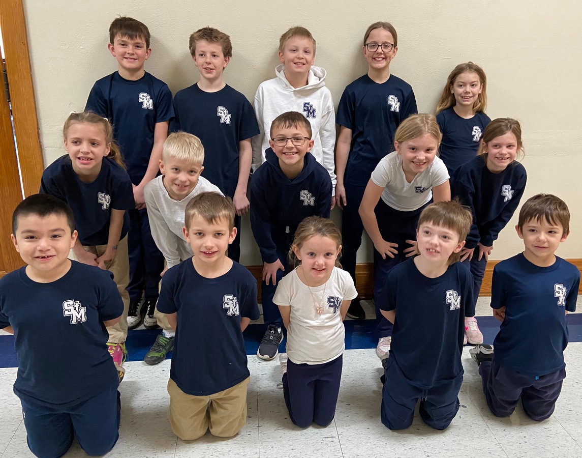 St. Mary’s Catholic Elementary School’s Students of the Day for the month of February. During February, St. Mary’s focused on the virtue of “prudence” or “making good decisions in specific circumstances”. These students exhibited prudence throughput this month.  (back row): Jonah Sellner (4th grade), Preston Rothmeier (3rd grade), Emmett Weiss (4th grade), Harper Armbruster (5th grade), and Emma Schmid (3rd grade). Middle row: Lynnette Seidl (1st grade), Leo Seidl (3rd grade), Blake Braulick (4th grade), Brogan Braulick (3rd grade) and Evelyn Maurer (2nd grade). Front row: Ethan Gonzalez (2nd grade), Cameron Domeier (1st grade), Brooklyn Braulick (kindergarten), Jack Schumacher (2nd grade) and Carwyn Mathiowetz (1st grade).