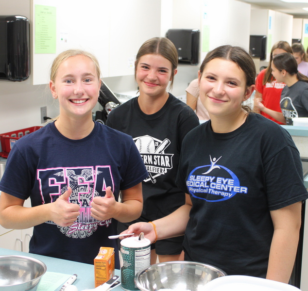 The students had a lot of fun in the FFA Summer Baking Class. Pictured l to r – Megan Sellner, Callie Evers, and Ava Kunkel made cookies.