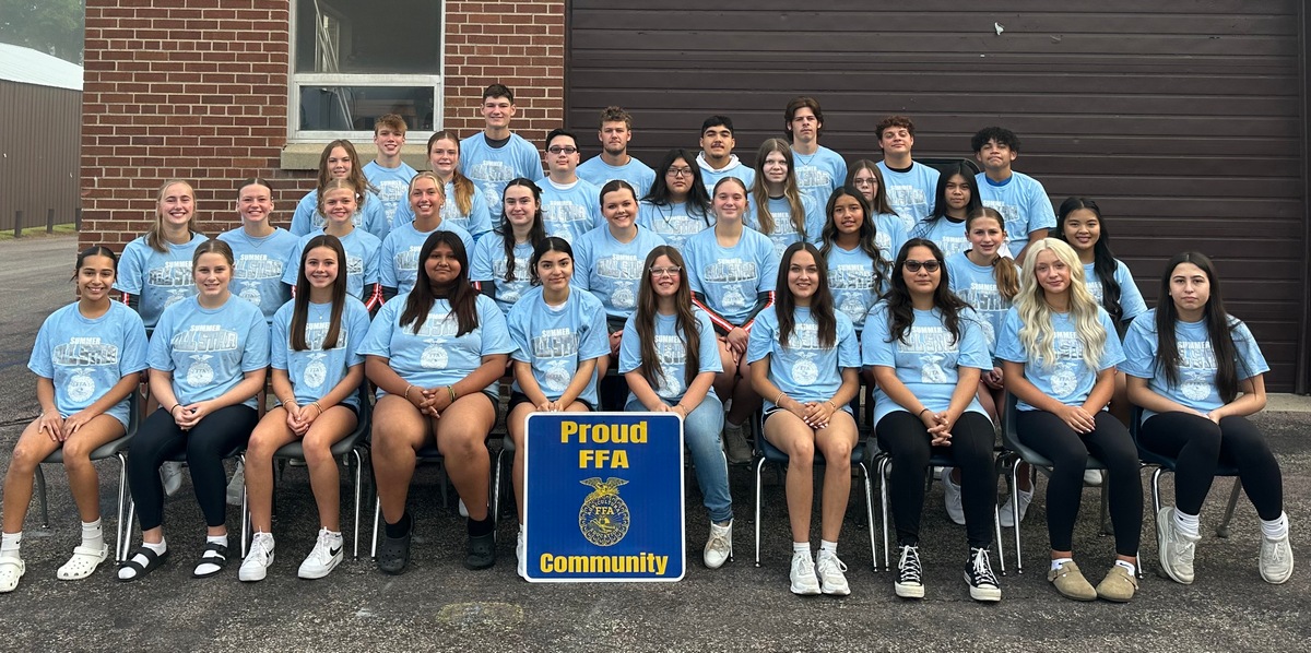 The FFA Summer All-Stars are Announced! These members participated in at least seven summer FFA events in 2025. Front, l to r – Ali Almanza, Ellie Weilage, Aubree Rathman, Karina Martinez, Arianna Guerra, Arianna Moore, Alex Confer, Kaliya Confer, Kenedi Wersal, Madi Martinez, Row 2 – Megan Sellner, Jaelynn Schauman, Jace Schauman, Taylor Berkner, Ella Arkins, Ava Sellner, Kenley Jensen, Arianna Hernandez, Camryn Maher, Kamille Capacia, Row 3 – Kylie Fischer, Lilyanna Uys, Carter Lazatin, Rita Bocanegra, Isabella Robb, Neveah Moore, Paola Gonzalez, Back Row – Noah Rossbach, Kayden Klein, Logan Ludewig, Eric Lozano, Cameron Moore, Charlie Hoffmann, Daniel Armstrong. Not Pictured – JoseMaria Martinez Paredes, Lucia Martinez Paredes, Ethan Feucht, Elsie Trebesch, Millie Lax, Breanna Lopez, Jaden Stone, Mateo Hornsby, Ruby Tauer, Ari Krzmarzick, Carsten Nienhaus.